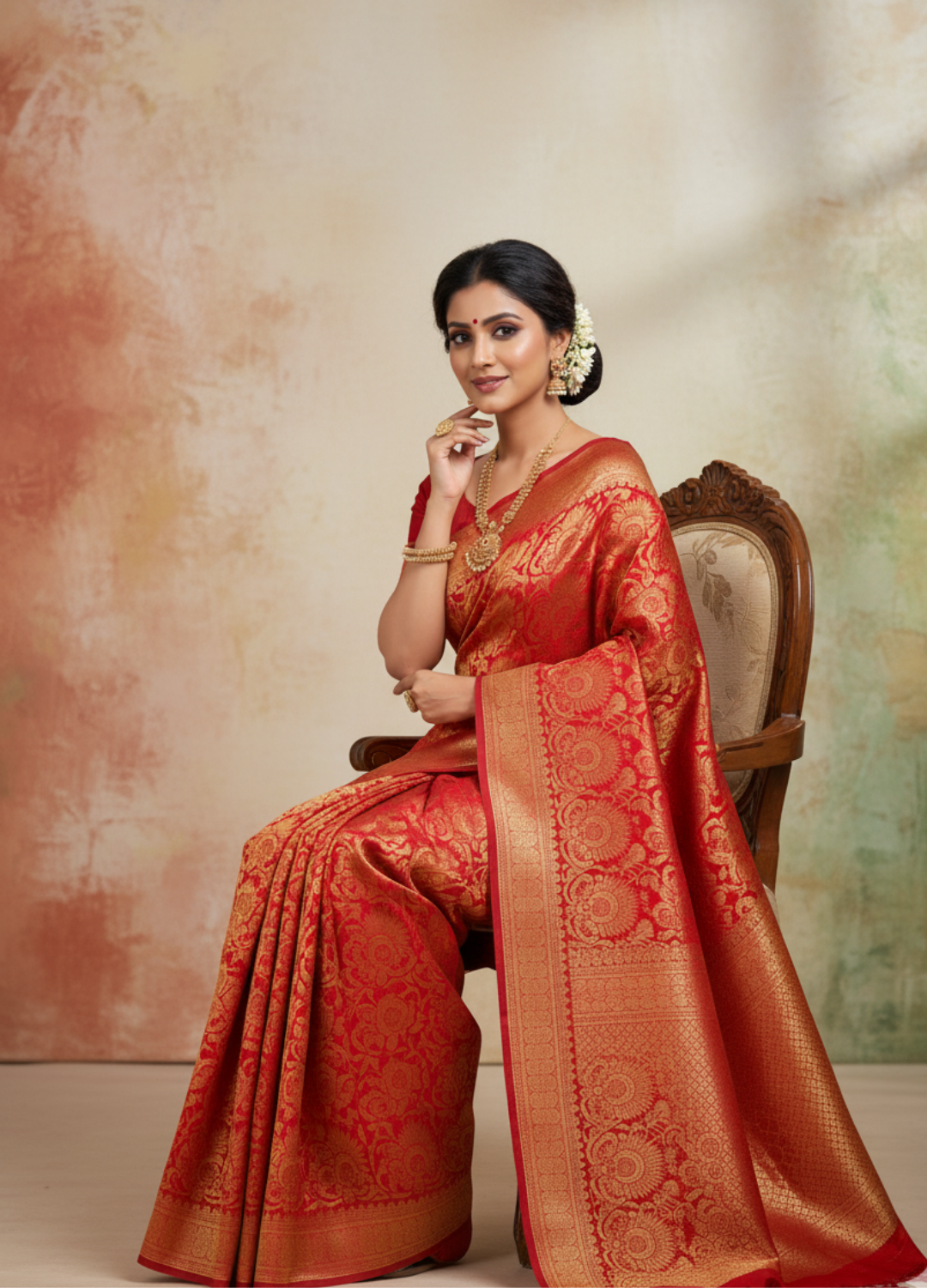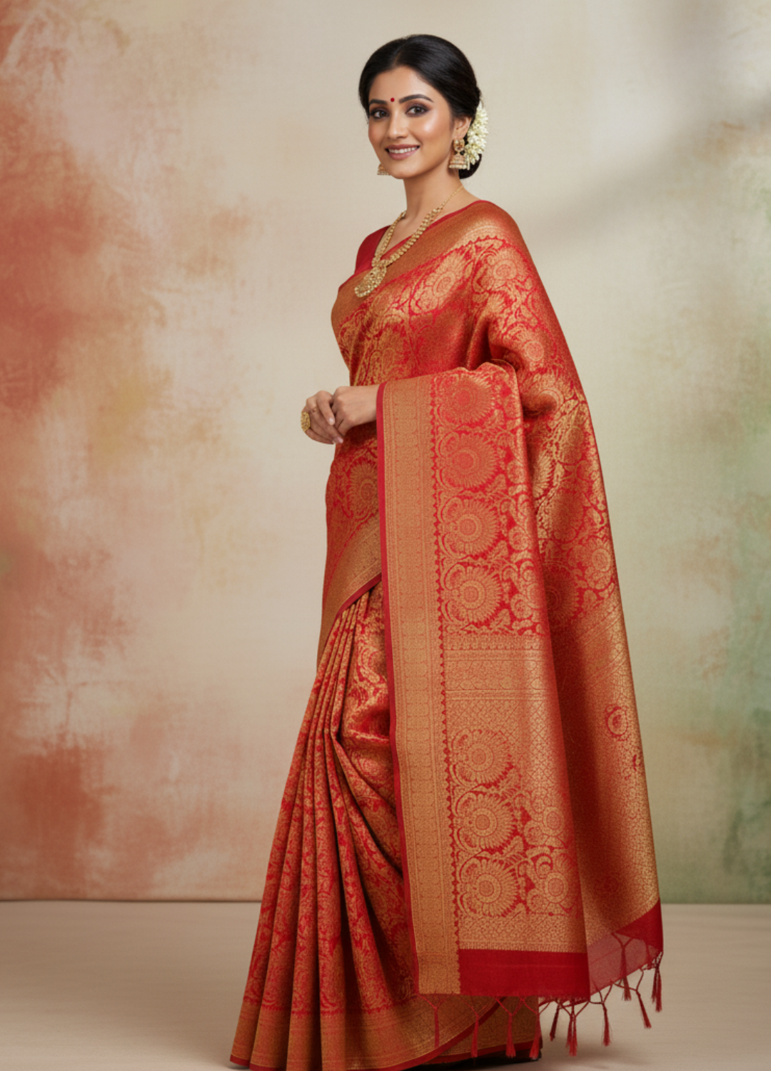 Craftsmanship: Handwoven using the centuries-old supplementary weft technique, making each saree unique.