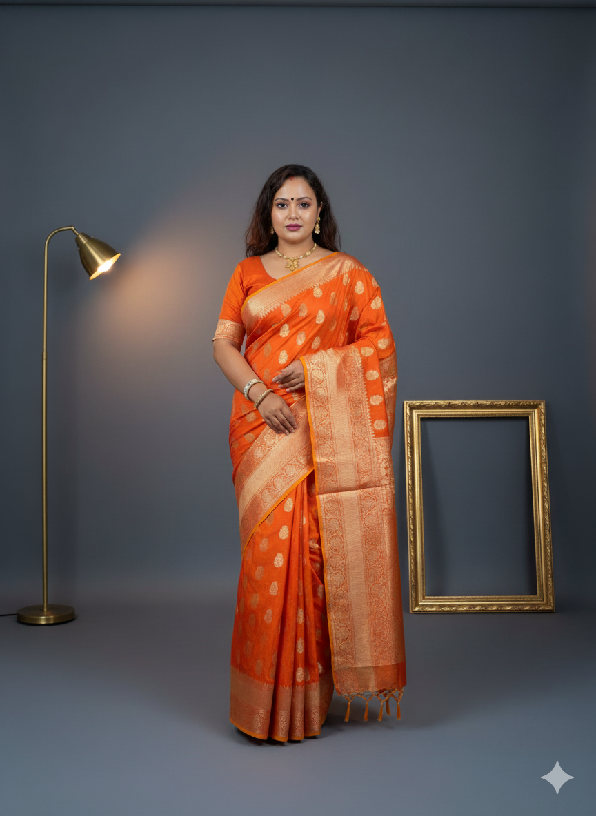 Craftsmanship: Handwoven using the centuries-old supplementary weft technique, making each saree unique.